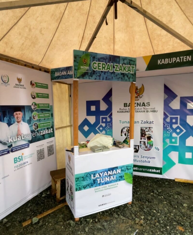 CBN Tanah Bumbu – Badan Amil Zakat Nasional Tanah Bumbu menghadirkan Gerai Layanan Zakat, Infak, dan Sedekah (ZIS) bagi pengunjung MTQ Nasional XXI Tingkat Kab. Tanah Bumbu, di Arena MTQ di Alun-alun Sepunggur Kec. Kusan Tengah yang sedianya rencana dibuka oleh Bupati Tanah Bumbu  Minggu malam Senin (16/11/2025).