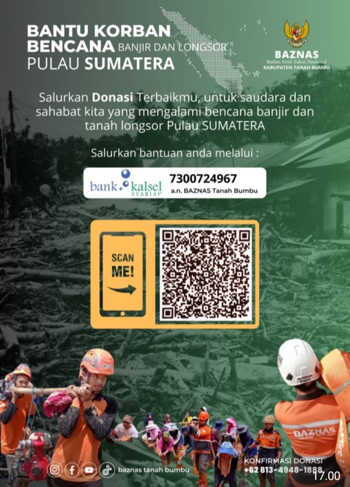Masyarakat yang ingin membantu dapat menyalurkan donasi melalui rekening resmi BAZNAS Tanah Bumbu: