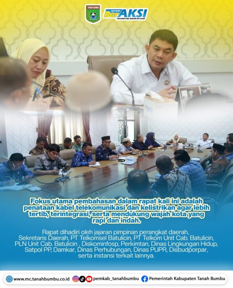 Melalui forum ini, Pemerintah Kabupaten Tanah Bumbu berharap dapat merumuskan kebijakan komprehensif yang menjadi landasan dalam penataan kabel secara bertahap dan berkelanjutan. (Fan)