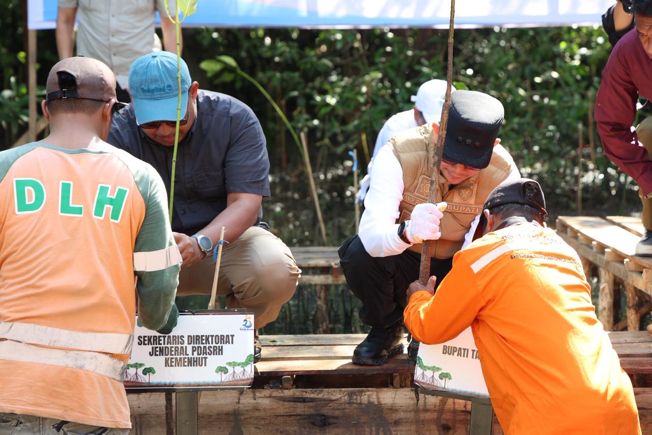 Penanaman pohon mangrove ini juga melibatkan berbagai unsur pemerintah pusat dan daerah yang menjadi simbol kuat komitmen bersama dalam menjaga kelestarian lingkungan pesisir.