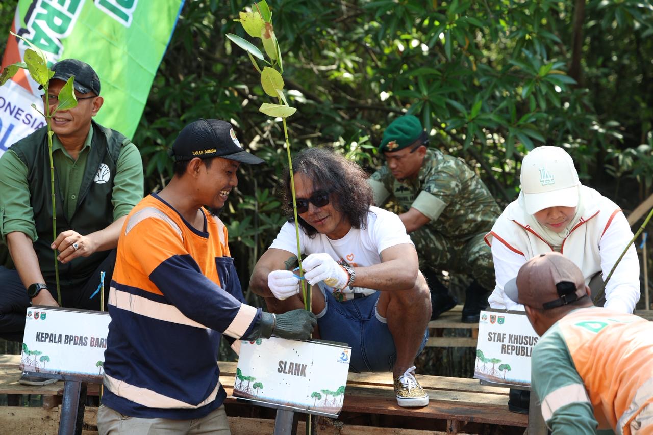 Penanaman pohon mangrove ini juga melibatkan berbagai unsur pemerintah pusat dan daerah yang menjadi simbol kuat komitmen bersama dalam menjaga kelestarian lingkungan pesisir.