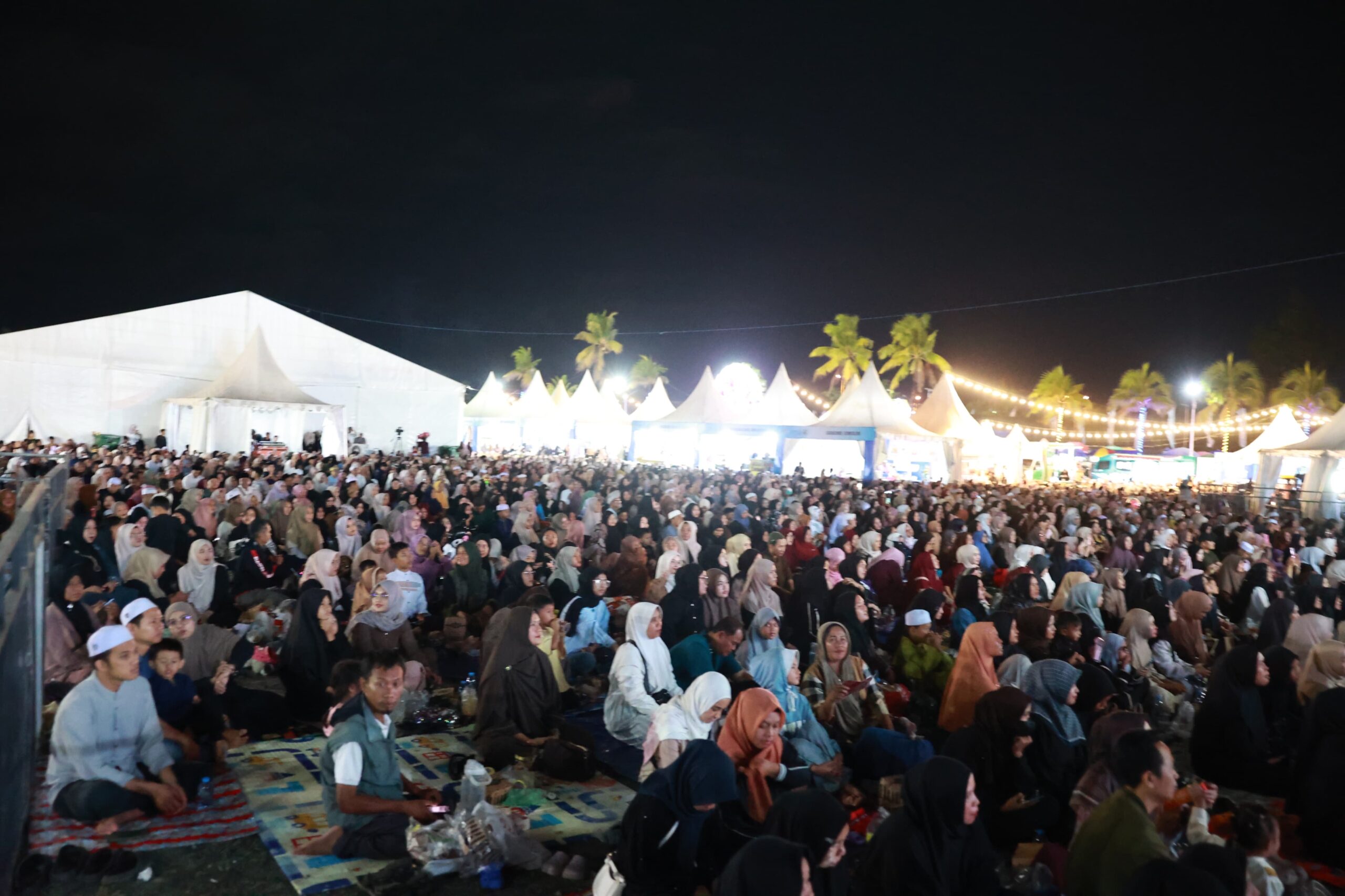 CBN Tanah Bumbu — Ribuan jamaah tumpah tuah memadati halaman Ruang Terbuka Publik (Samping KFC) Simpang Empat, Kamis (2/4/2026) pada kegiatan Aksi Inovasi 2026 Tabligh Akbar bersama Ustadz Aa Hilman Fauzi.