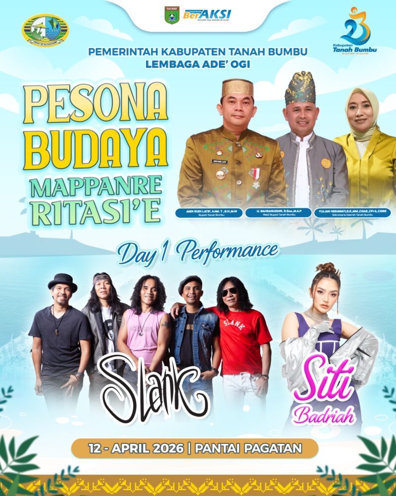 Kehadiran kedua artis nasional tersebut menjadi magnet utama acara Pesona Budaya Mappanre Ritasi’e yang berlangsung pada 12–26 April 2026. Kegiatan ini sekaligus menjadi bagian dari rangkaian perayaan Hari Ulang Tahun ke-23 Kabupaten Tanah Bumbu.