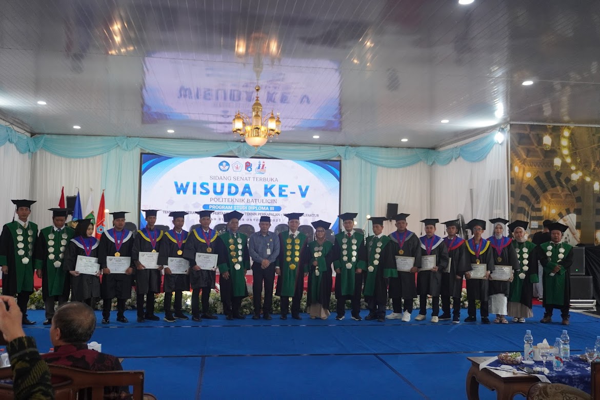 Pada Wisuda ke-V Politeknik Batulicin ini, terdapat empat program studi yang meluluskan mahasiswa, yaitu Teknik Alat Berat, Teknik Pertambangan, Teknik Perkapalan, dan Teknik Manufaktur.